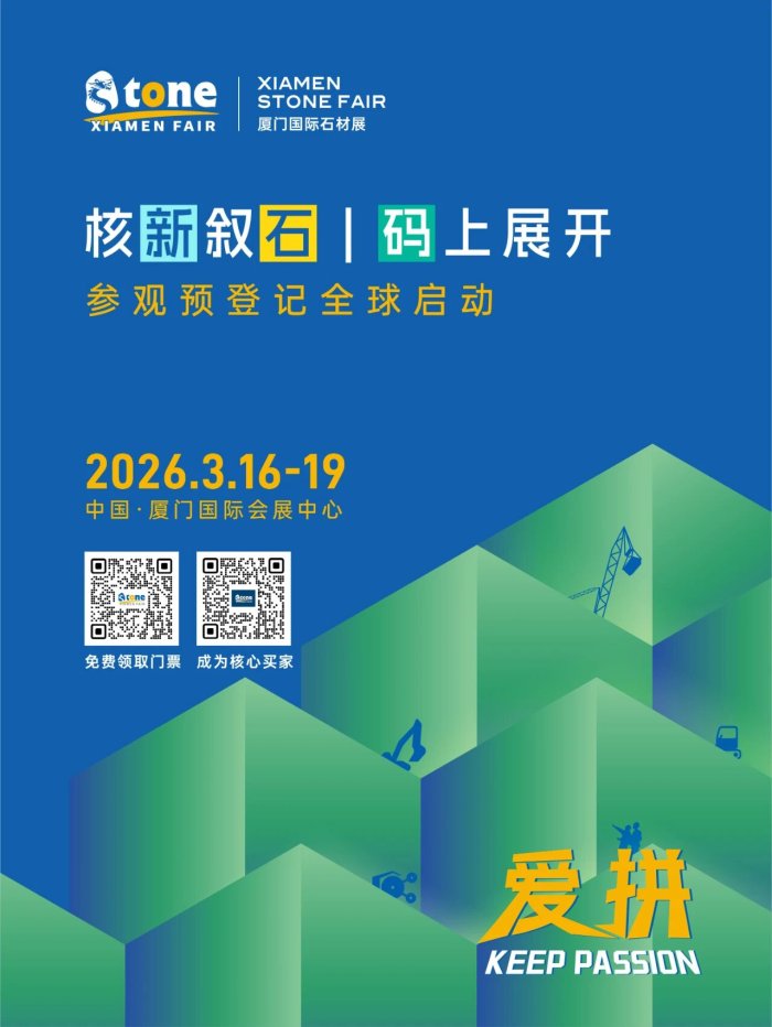 ? 2026年3月16-19日,第二十六届中国厦门国际石材展深度联合全球参展企业、权威商协会、行业和设计媒体KOL,围绕“新品、新技术、新渠道”三大核“新”,叙“石”、蓄势,共同探索和诠释石界新生态的不断融合和更新。