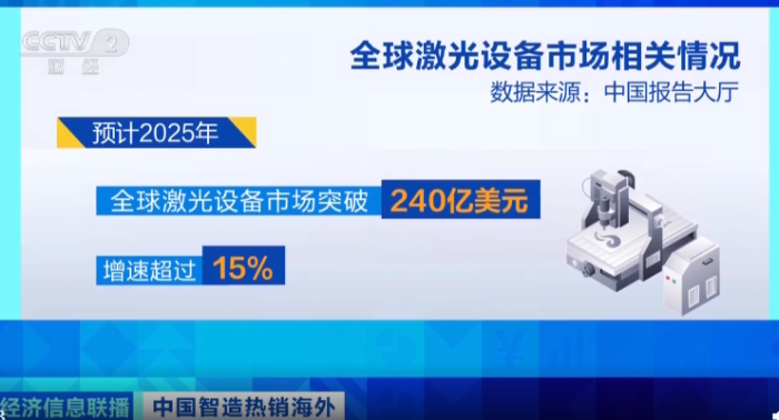 据央视财经报道,2024 年,全球激光设备市场销售收入约为218 亿美元,其中,中国激光设备市场销售收入占比达到56.6%。