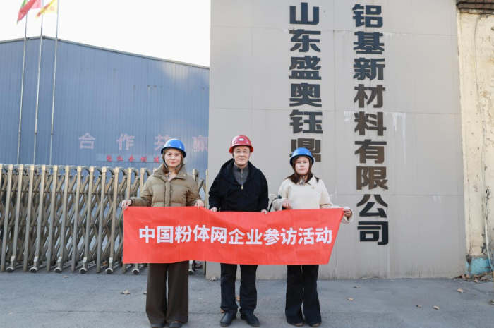 山东盛奥钰鼎铝基新材料有限公司总经理高明亮(中)同粉体网一行合影留念