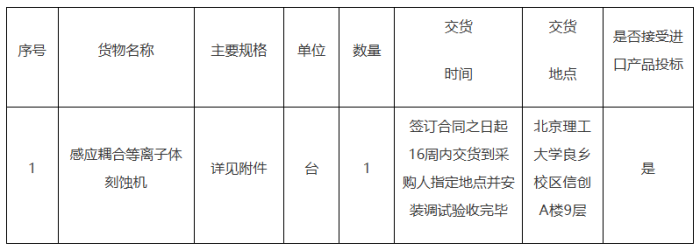 项目名称:北京理工大学感应耦合等离子体刻蚀机采购