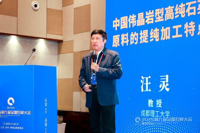 成都理工大学教授汪灵作《中国伟晶岩型高纯石英原料的提纯加工特点》报告