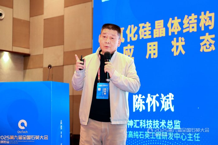 神汇科技技术总监、江苏省高纯石英工程研发中心主任陈怀斌作《二氧化硅晶体结构与应用状态》报告