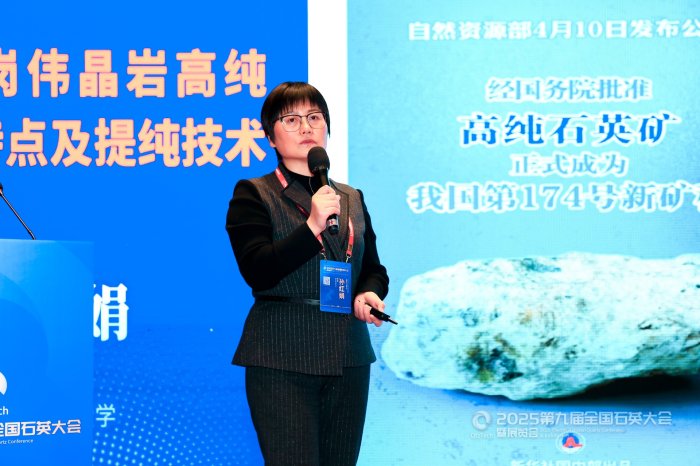 西南科技大学教授孙红娟作《优质花岗伟晶岩高纯石英矿特点及提纯技术》报告