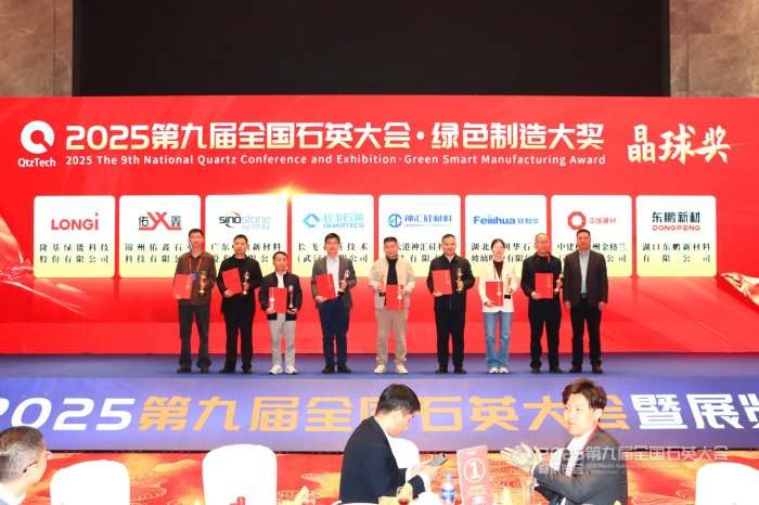 为促进参会代表之间的互动交流,11月20日晚,www.188betkr.com 举办了“青峰之夜”答谢晚宴。晚宴开始,首先进行的是“2025全国石英大会?绿色智造大奖”晶球奖颁奖典礼,隆基绿能、菲利华、长飞石英、金格兰石英、佑鑫石英、神汇科技、中旗新材、东鹏新材等8家企业获得“晶球奖”。同时,南昌矿机集团股份有限公司、江西省青峰矿业有限公司等近50家企业获得“优秀供应商”大奖。