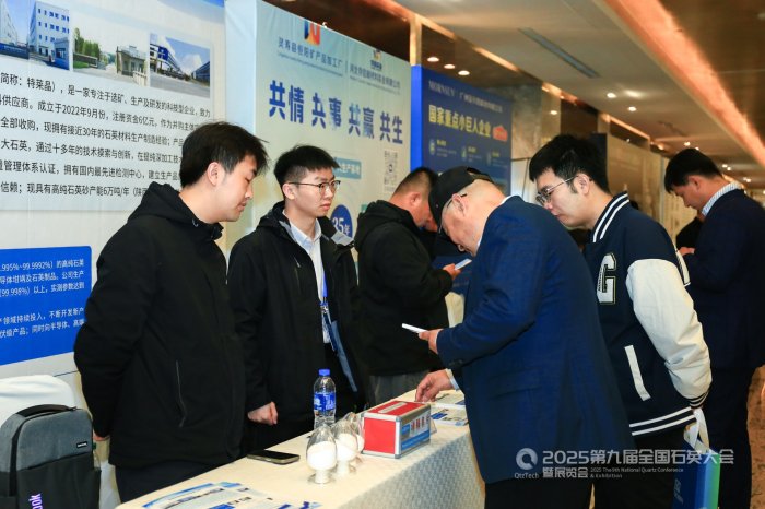 大会期间,近七十家企业同台竞秀,从石英矿、基础用砂到高纯砂、精密制品,乃至尖端装备与技术服务,实现了一场石英领域的全景式展示,吸引了大量参会代表驻足。展台前交流气氛热烈,供需双方实现了高效、零距离的深度互动。
