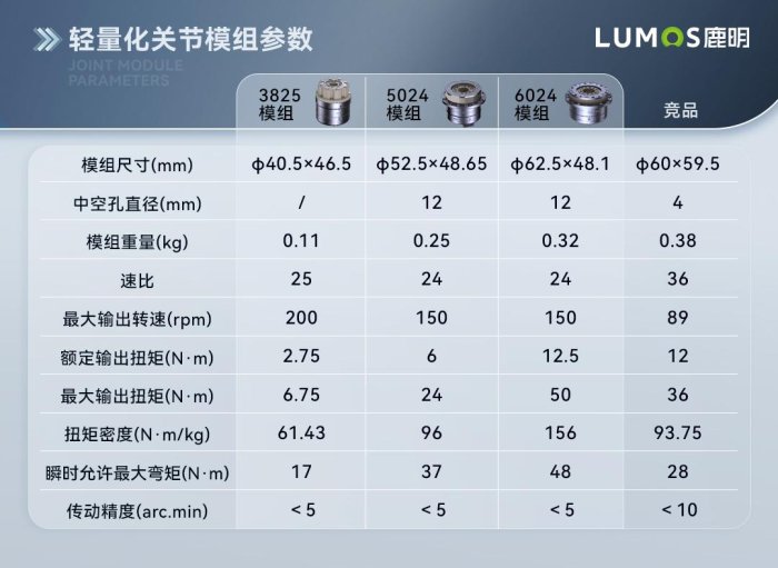 作为人形机器人的核心部件,关节模组的性能直接决定机器人的运动灵活性、负载能力与续航表现。传统关节模组多采用金属材质,普遍存在重量大、扭矩密度低、布线杂乱等问题,成为制约人形机器人走向轻量化、高集成化的关键瓶颈。针对这一行业痛点,鹿明机器人与富春染织聚焦极致结构轻量化与高性能需求,展开深度协同研发,最终推出的小尺寸大中空轻量化关节模组,在重量、空间与效率之间实现了最优平衡。