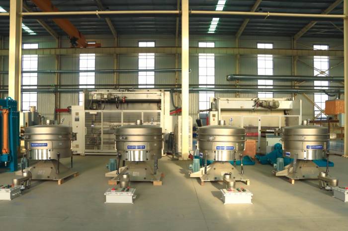 王经理告诉粉体网一行,在过去20年,合德筛分致力于一件事情——做好振动筛,为客户提供值得信赖的筛分解决方案。合德筛分主要产品有圆形摇摆筛、方形摇摆筛、直线筛、直排筛、气流筛、超声波振动筛等筛分设备,设备主要应用于0—500目超精细粉末的筛分,服务于包括但是不限于化工行业、食品医药行业、冶金矿业、陶瓷建材行业和环保回收行业。