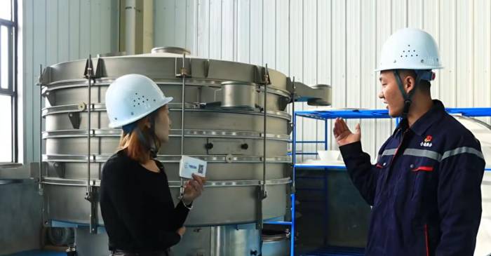 在生产车间,粉体网一行看到了公司产品的生产流程。谈到产品质量时,王经理表示,合德筛分的产品历经来料加工、生产以及发货前检验三道流程,每道流程都有着严格的检测程序,并且记录在案。比如说像圆形摇摆筛,公司会测试产品的运行噪音、电流以及产品的摆幅,经过这些检验之后才能出厂,以此来保障提供给客户合格的产品。
