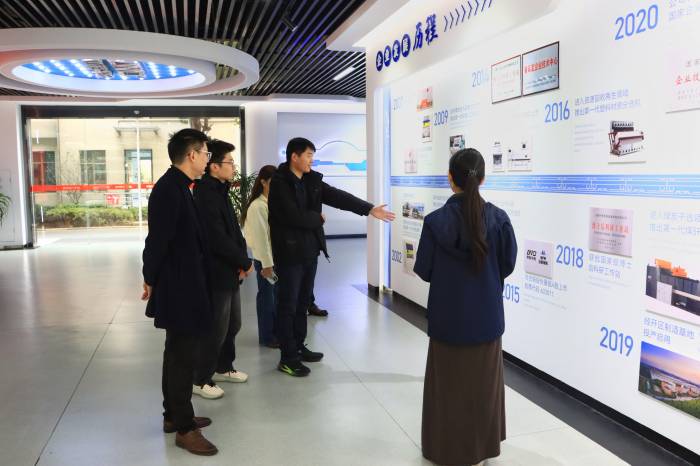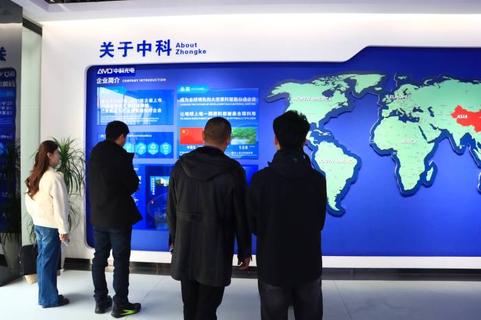 在实地参观环节,中科光电团队首先带领宋总一行走进企业展馆,详细介绍了公司的发展历程、核心产品、荣誉资质及全球合作布局。目前,中科光电每年研发经费投入在8000万,已经拥有500多项技术专利,公司荣获国家知识产权优势企业、国家专精特新“小巨人”企业、安徽省制造业服务示范企业、安徽省优秀民营企业等荣誉。