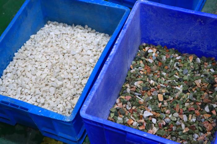 碳酸钙矿石原料分选效果展示:左边成品,右边次品