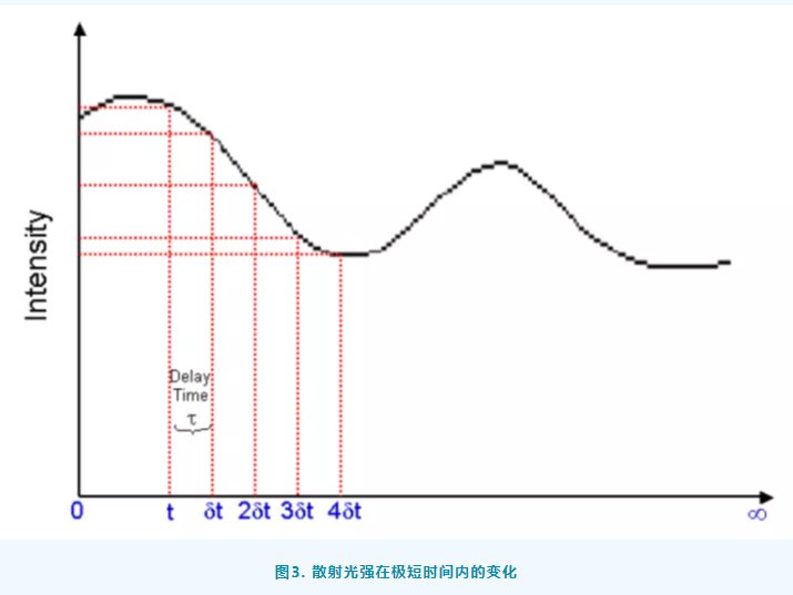 接下来我们要引入“相关性”这个概念,如图3所示,如果我们尅/span>t时刻的散射光强度和其后较长时间的散射光强相比较,显然,他们没有什么相关性。但是,当我们将时间缩短至极短时间范围内,也就是尅/span>t咋/span>t+δt时刻的光强值进行比较,就能得到很强的相关性,随着时间的增加(δt, 2δt, 3δt,等等),其散射光强值和t时刻的相关性不断衰减,最后接运/span>0值,相关性通常用数值来描述'/span>1↑/span>0),数值越靠近‛/span>1”代表相关性非常高,越接近‛/span>0”代表相关性很低。γ/span>t的时间非常短,一般在纳秒'/span>nanosecond+/span>ns)或者微秒(microsecond,λ/span>s)、/span>