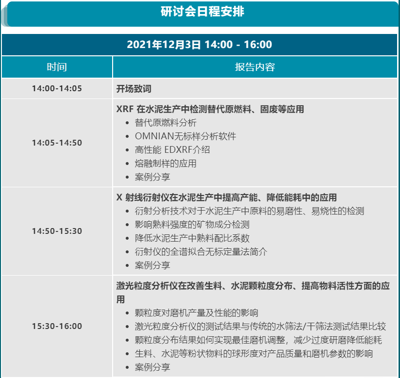 为了解答这些水泥企业关心的问题,马尔文帕纳科将于12朇/span>3日(周五)举办《先进分析技术助力水泥企业低碳生产》为主题的网络研讨会,届时将由资深应用工程师介绍最新的XRF?/span>XRD技术在应对水泥行业低碳生产清洁原燃材料所需的分析解决方案,以及马尔文帕纳科激光粒度分析技术如何确保水泥的质量和强度,相比传统的干筚/span>/水筛法又有何优势呢?一堂生动的讲座从分析技术角度帮您解决问题,精彩内容不容错过,期待您的关注和参与?/span>