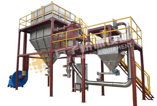 (1)喷射细粒环在高速旋转叶轮作用下,流经叶轮的气体压力升髗/span>,高压气流流出叶轮名/span>,经过喷射细粒?/span>,由于旋转导风叶的叶片设计成曲线形,进口截面积大,出口截面积小,因此出口的气流压力降位/span>,速度增大,并且旋向流出,有利于分级、/span>