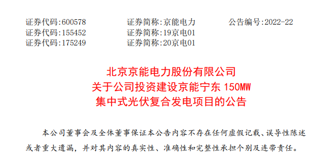 京能宁东 150MW 集中式复合发电项目(以下简称“宁东光伏项目”)由公司全资子公司宁东新能源负责建设管理。宁东新能源公司注册地址为宁夏宁东能源化工基地临河工业园区,法定代表人为师开革?nbsp;