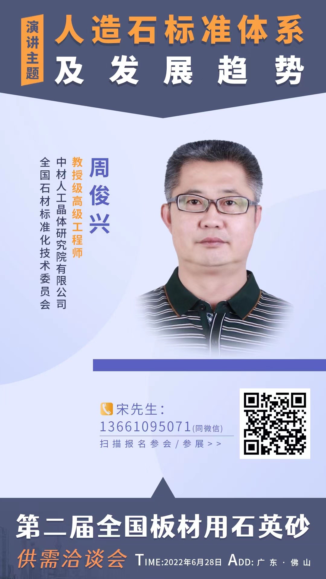 2022??8日,中国粉体网将在广东佛山举办“第二届全国板材用石英砂供需洽谈会”。来自全国石材标准化技术委员会、中材人工晶体研究院有限公司的教授级高级工程师周俊兴将带来题为《人造石标准体系及发展趋势》的报告、/span>届时,报告将详细介绍现行人造石英石国家标准、行业标准、团体标准,以及制定中的人造石英石国家标准、行业标准,最后,报告会阐述人造石英石标准目前存在的问题和未来发展趋势、/p>