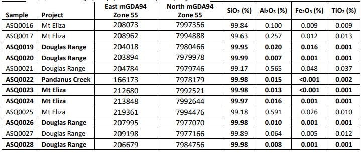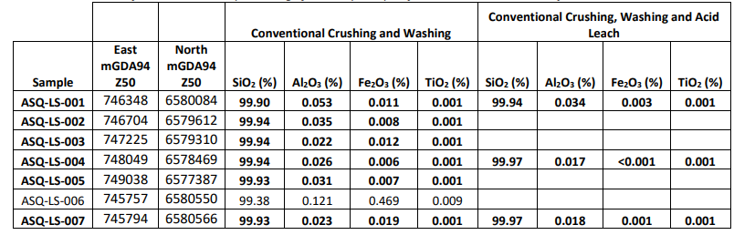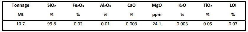 ASQ目前正在进行一项研究,在Gigin项目区从其高等级硅砂中生产高纯度硅石。目标是开发生产一种小规模、高纯度的产品,其二氧化硅品位超?9.95%、/p>