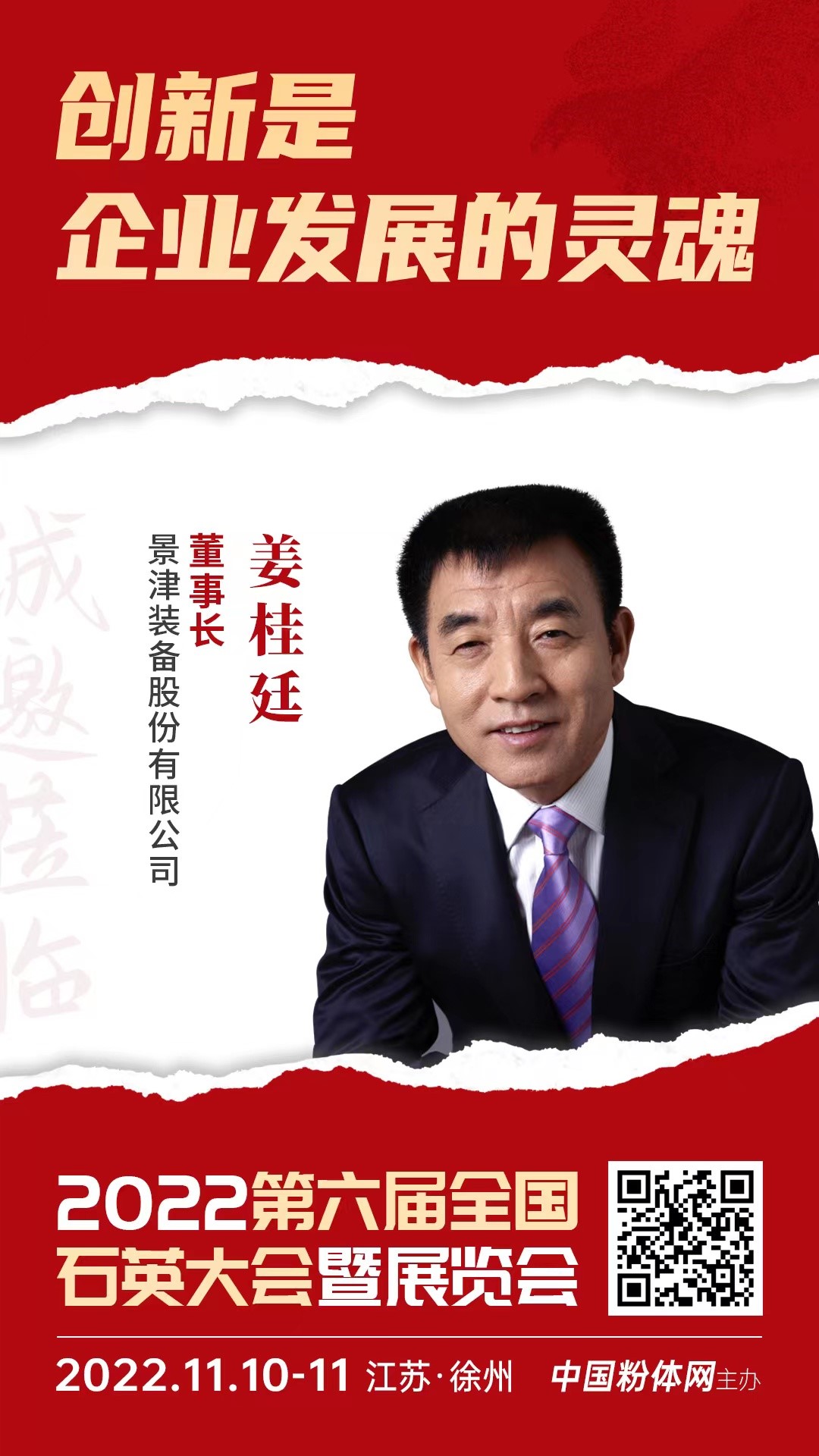 “精细、创新、诚信、责任”是景津企业精神,即时创新,为客户创造更大价值,是景津每位员工的工作准则、span style="color: rgb(192, 0, 0);">2022?1?0日至11?/strong>+span style="color: rgb(192, 0, 0);">中国粉体罐/strong>将在江苏徐州举办?022第六届全国石英大会暨展览会“/strong>、span style="color: rgb(192, 0, 0);">景津装备股份有限公司董事长姜桂廷将带来题丹span style="color: rgb(192, 0, 0);">《创新是企业发展的灵魂《/strong>的报告、/p>