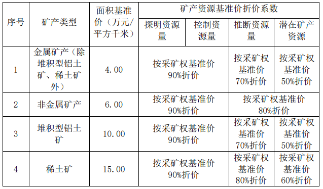 3.拟出让探矿权涉及多个矿种时,面积基准价就高计箖拟出让探矿权中已有资源储量基准价涉及多个矿种的分别计算、/p>