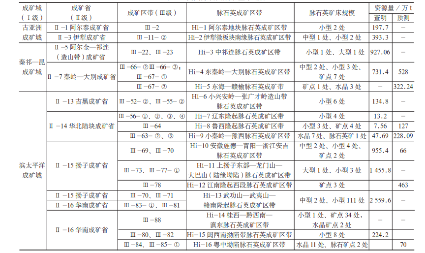 ?】高树学,等.我国脉石英成矿区带初步划?中国非金属矿工业导刊.2020.