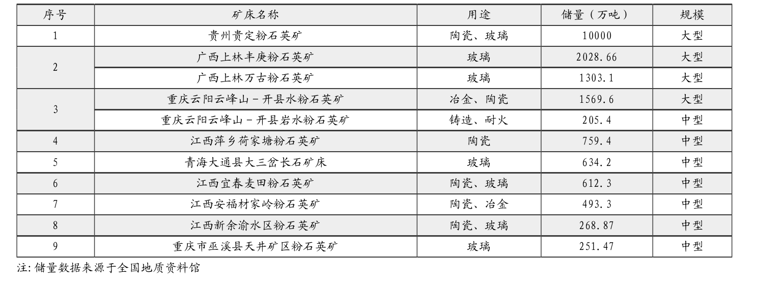 中国主要粉石英矿及分籺/span>
