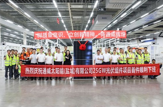 中国粉体网讯近日,通威太阳能(盐城)有限公?5GW光伏组件项目首件组件顺利下线、/p>