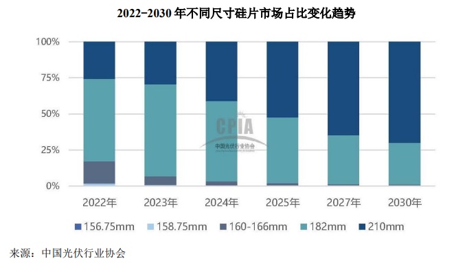 182mm主要是从垂直产业一体化的角度出发,基于对光伏电池的安装运输、组件的功率和效率、上下游协同性的考虑、/p>