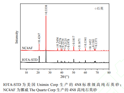 ? 美国和挪威高纯石英砂的X-射线粉晶衍射分析(XRD)谱国/p>