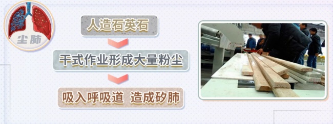 由于人造石英石二氧化硅含量高,在切割、打磨等加工安装时多为干式作业,操作场所粉尘浓度很高,人造石英石粉尘导致的工人矽肺病在世界各地已多次见报道,严重影响劳动者生命健康,引起专家和学者的关注、/p>