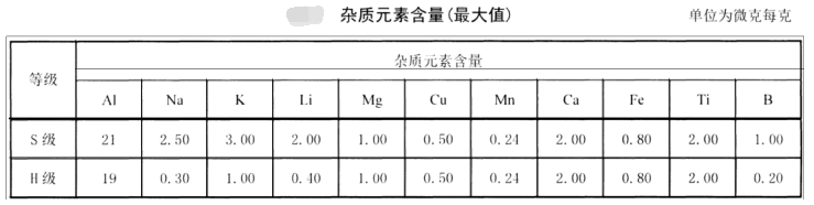 石英玻璃基板中Al、Fe、Ca、Mg、Ti、Cu、Co、Mn、Ni、Li、Na、K、B?3种杂质元素含量的质量分数总和应不大于2.0μg/g。其中Li、Na、K3种杂质元素含量的质量分数之和应不大于1.0μg/g,单一杂质元素含量的质量分数应不大?.5μg/g、br/>
