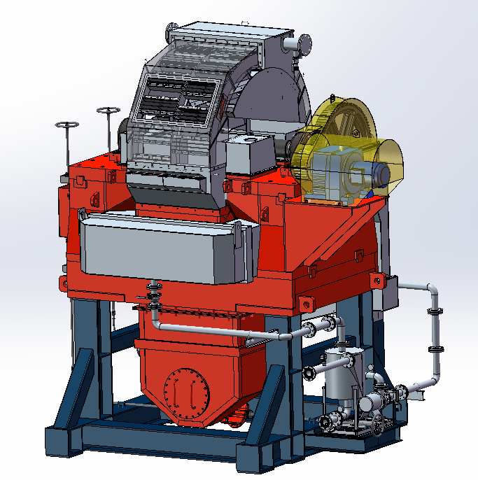 国特设备生产的立环高梯度磁选机,采用转环立式旋转、反冲矿石,并配有高频振动机构,具有富集比大、对给矿粒度、浓度和品位波动适应性强、工作可靠、操作维护方便等优点、/p>