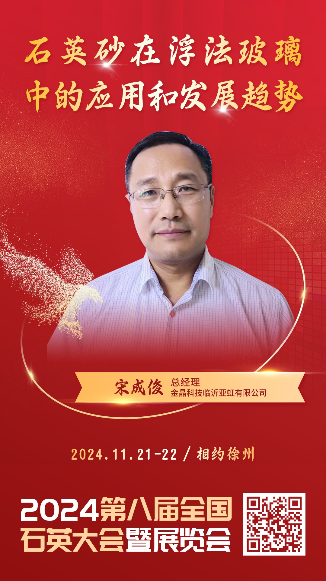 2024?1?1-22日,由中国粉体网主办的‛span style="color: rgb(192, 0, 0);">2024(第八届)全国石英大会暨展览伙/strong>”将?strong>江苏徐州召开+strong>金晶科技临沂亚虹有限公司的总经琅strong>宋成俉/strong>将做〉strong>石英砂在浮法玻璃中的应用和发展趋劾/strong>》的报告,届时,他将结合研发经验,详细解读石英砂在浮法玻璃中的应用和发展趋势、/p>