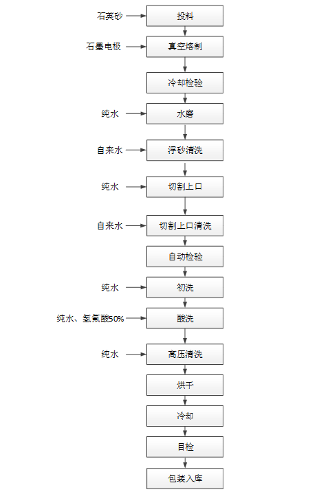 其主要生产工艺流程为:投?真空熔制-冷却检?水磨-浮砂清洗-切割上口-切割上口清洗-自动检?初洗-酸洗-高压清洗-烘干冷却-目检-包装入库、/p>