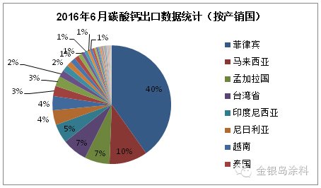 从出口量来看?月来自菲律宾为中国碳酸钙出口总量最大的国家,占?0%;而来自马来西亚的占比10%;孟加拉排名第三。另外也有部分为台湾省、印度尼西亚尼日利亚等其他国家,出口量占比为?%?%?%、/span>