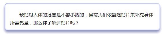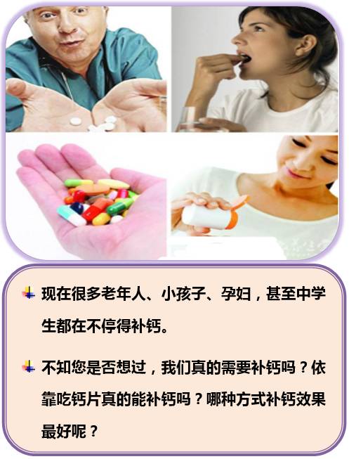 钙片并不是全无用处,但具体说作用有多大就要因人而异了。小编认为,食补是最好的补钙方式,合理膳食,勤晒太阳,必不会有错。当然,如果您真的出现缺钙现象,一定要记得学会选择,不要听信广告宣传,要选择适合自己的补钙剂。此外,服用要掌握一个“度”,切勿盲目大量,否则会对身体造成伤害?/span>
