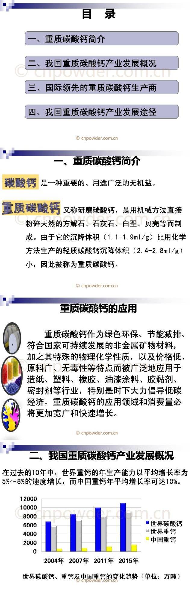 我国碳酸钙资源丰富,储量居世界前列。但是我们并不是碳酸钙生产强国。目前,碳酸钙企业普遍存在小而乱、产品低端无创新等问题。我国重钙产业亟待蜕变,而规模化、精细化、集聚式发展是重钙产业发展的必然趋势、/p>