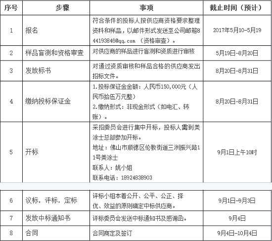 中国粉体网讯广东美涂士建材股份有限公司应生产部要求,为了满足生产需求扩展业务,经公司研究,对重钙采购项目进行公开招标。有关事项如下: