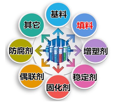 除此之外,加入石棉绒、玻璃纤维等提高胶层的冲击强度;添加氧化铝、钛白粉可增强密封胶的粘接力;添加金属粉末,可提高导电性…?/p>