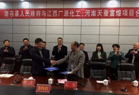 本次签约仪式由万里征副县长主持,广源化工公司董事长李海滨、总经理邹检生、副总经理何秋华、广源新材料总经理万江霖、南召县县长方明洋、县委常委、副县长李文鹏、副县长万里征以及产聚委、招商、工信委、工商、国土、规划等十多个政府部门负责人隆重出席了此次签约仪式、/p>
