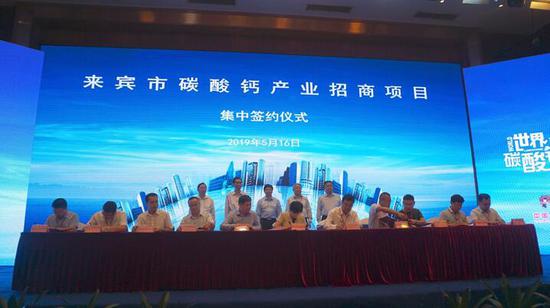 中国非金属矿工业协会在大会上授予来宾市“中国绿色碳酸钙之都·非金属新材料产业示范区”牌匾,并与来宾市人民政府就共建非金属矿国家工程技术中心来宾分中心达成共识。推介会上共有华润集团装配式建筑PC构件及无机人造石材生产项目等6个招商项目签约,总投资达39亿元、/p>