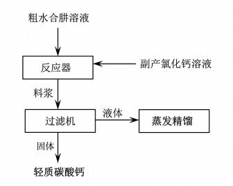 利用氨碱法生产纯碱过程中,副产的氯化钙溶液与粗水合肼溶液为原料,制备优质轻质碳酸钙、/p>