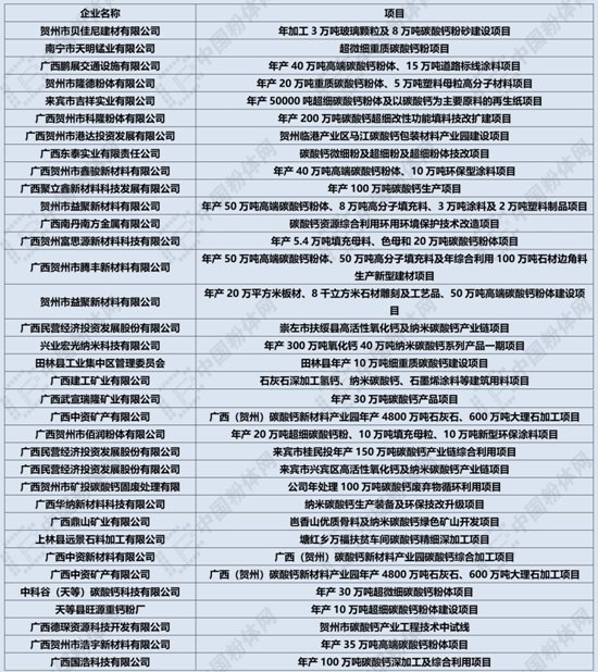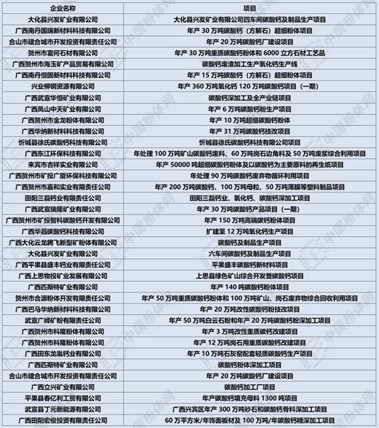 广西投资项目在线并联审批监管平台、矿材网、相关公司官网、中国粉体网