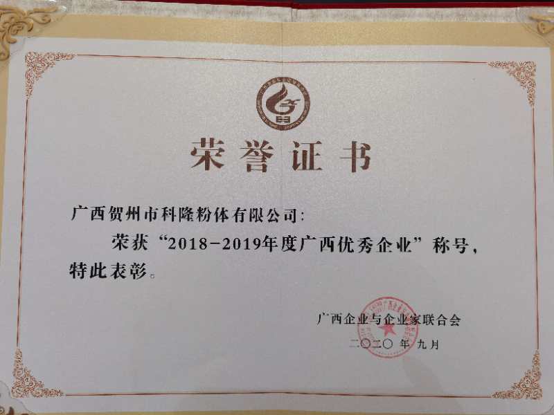 这次活动宣读了《关于表?018?019年度广西优秀企业的决定》,广西贺州市科隆粉体有限公司等100家企业被授予?018?019年度广西优秀企业”称号,这是政府部门对科隆公司的肯定,也是广大客户及社会各界人士对科隆公司持之以恒关心和支持的结果、/p>