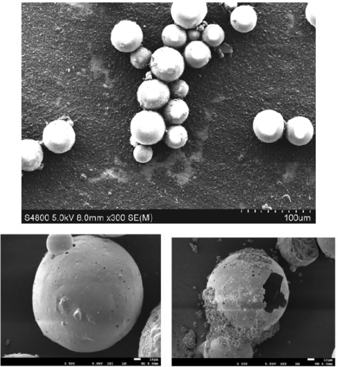 上图即是漂珠的SEM形貌。据中国粉体网编辑的了解,对于漂珠形成的机理已有众多报道,但并不统一,多数人认为粉煤灰中的漂珠,是煤粉进入锅炉中燃烧,高温作用下,煤渣通过释放部分水分,排出内部气体,表面氧化,燃烧等诸多复杂的反应后,又经过多次冷热交替的过程而形成、/p>