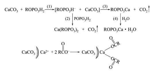 磷酸酯类、硬脂酸与碳酸钙反应示意国br/>