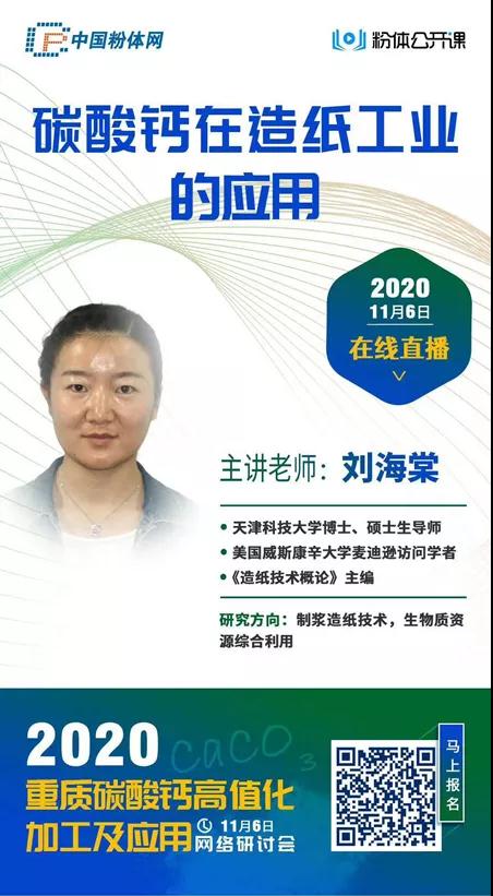 2020?1??/span>+strong>中国粉体罐/strong>旗下粉体公开诽/strong>平台将举办首届‛strong>重质碳酸钙高值化加工及应用网络研讨会”,届时来自天津科技大学皃span style="color: rgb(255, 0, 0);">刘海棠博?/span>将作〉span style="color: rgb(255, 0, 0);">碳酸钙在造纸工业中的应用》报告,详细介绍碳酸钙在造纸工业中的具体应用、/p>