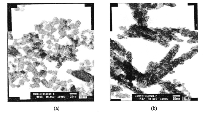 从图像a分析可知,当无添加剂时,纳米碳酸钙晶体形貌呈方形和不规则形状,粒径分布不均匀。从图像b可以看出,当实验条件完全相同,碳化反应前加入1%水杨酸时,合成纳米碳酸钙平均粒径直径?0nm左右,长度为200nm左右的链状纳米碳酸钙,形貌规整,粒径和长度分布均匀、/span>