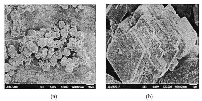 将添?%乙二酸的碳酸钙样品使用无水乙醇稀释,装入封闭好的样品管中,并在超声波中分?0min后,使用扫描电子显微?SEM)观察并拍照、/span>