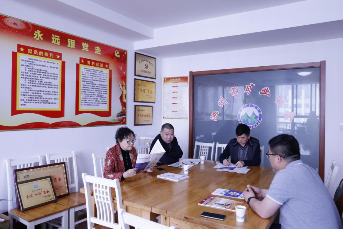 左一 商会名誉副会长、副秘书长孙俊伟,左 李建村会 右一 粉体网程经理 右二 商会党支部书记、秘书长朱建涚/p>