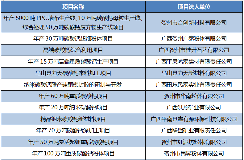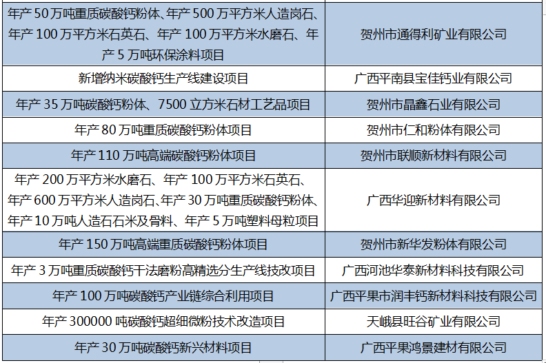 2021?-4月广西碳酸钙重点备案项目汇怺/strong>