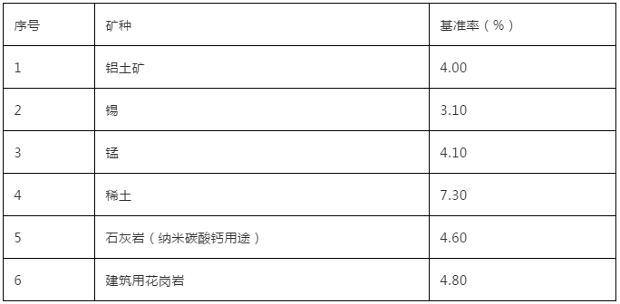 广西壮族自治区第二批矿业权出让收益基准率